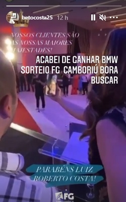 Ele comprou um imóvel por lá, concorreu e ganhou a BMW 120i, que custa cerca de R$ 200 mil.