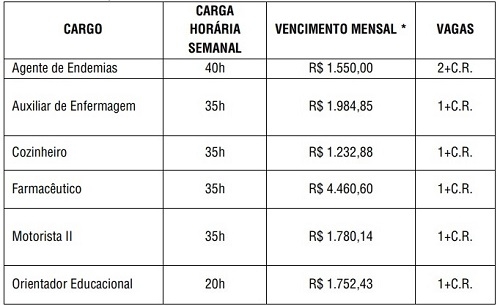 A prefeitura de Campo Mourão vai realizar Processo Seletivo Simplificado com sete vagas em seis cargos. Também servirá para formar cadastro de reserva. Os salários vão de R$ 1,2 mil a R$ 4,4 mil (veja quadro acima). As inscrições serão gratuitas. Quando? De 15 a 24 deste mês, somente pela internet - https://g-ale.net/pss/.