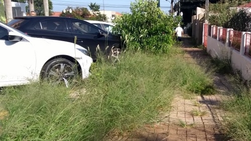 Situação de calçada na rua Brasil, centro de Campo Mourão.