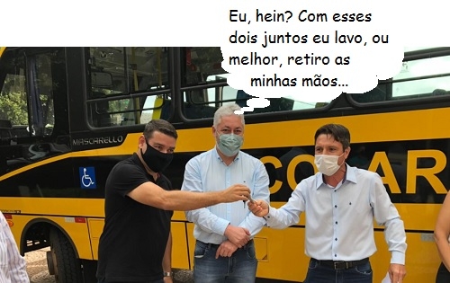 O deputado estadual Douglas Fabrício participou esta semana da entrega de ônibus para a prefeitura de Engenheiro Beltrão. Representou o deputado federal Rubens Bueno, que foi quem viabilizou os recursos junto ao governo federal. Detalhe: chaves entregues ao prefeito Rogério Rigueti e ao prefeito eleito Garbim Jr, que foram adversários na eleição de novembro. Hummmm...