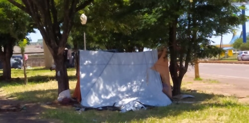 Trinta índios, entre adultos e crianças, estão acampados na já famosa pracinha perto da rodoviária.