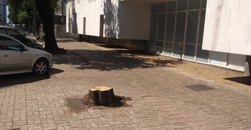 Depois da reclamação por causa da sujeira das andorinhas em frente ao antigo HSBC, a "solução" encontrada foi o corte de duas árvores que existam no local.
