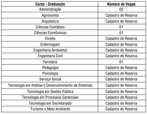 A prefeitura de Campo Mourão vai abrir processo seletivo para contratação de estagiários de nível superior. Vagas imediatas são apenas cinco para estudantes de quatro cursos, mas há cadastro de reserva para outros 14 cursos. A bolsa auxílio é de R$ 748 (seis horas) e R$ 498,67 (quatro horas), mais auxílio transporte (R$ 10 por mês ou vale-transporte). As inscrições serão de 1 a 15 de março.