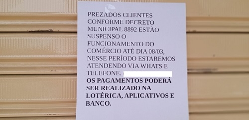 "Os pequenos empresários estão sendo sacrificados por não poderem trabalhar, mas nós não podemos contrariar um decreto editado pelo Estado, infelizmente".