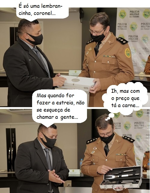 Os cliques são da semana passada, na cerimônia de troca de comando do 11.o BPM, de Campo Mourão. O tenente-coronel Júlio Cesar Vieira da Rosa foi embora para Curitiba. Na despedida ganhou um "kit churrasco" de presente do vereador Subtenente Macedo.