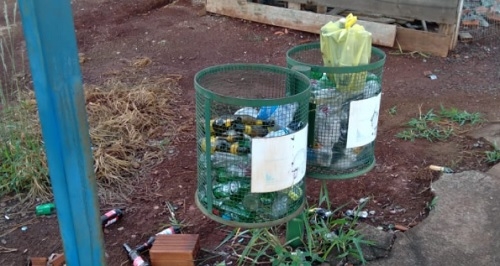 "Av. Luciano Marmontel, jardim Araucária. Garrafas, depositadas no cesto de lixo, sem qualquer preocupação com o devido cuidado da armazenagem. Soltas, expostas. Falta de respeito com os coletores".