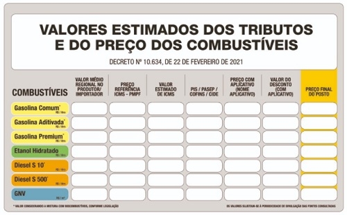 Também devem informar valores de impostos estaduais e federais sobre os combustíveis.