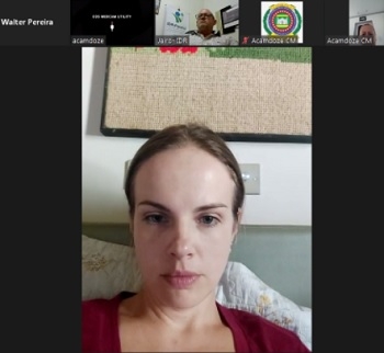 Naiany Hruschka Salvadori (Podemos), vereadora em Campo Mourão, ao participar da reunião online da Acamdoze; sexta-feira. Ela explicou que estava na fazenda acompanhando o marido com a colheita da soja.