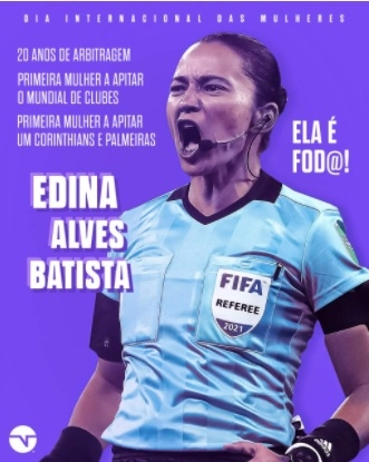 No Dia Internacional da Mulher, a Assembleia Legislativa do Paraná incluiu em ata votos de louvor e contratulações à árbitra Edna Alves Batista, de Goioerê. Pudera. Única mulher a apitar na Série A do Brasileirão, árbitra da Copa do Mundo Feminina, do Mundial de Clubes masculino e do último dérbi Corinthians x Palmeiras. A iniciativa foi do deputado Luiz Fernando Guerra.
