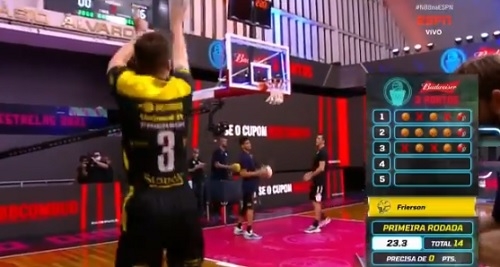 Matt Frierson, de Campo Mourão, fez bonito no "Torneio de 3 Pontos" do Jogos das Estrelas, realizado nesta sexta-feira pelo NBB. Foi o primeiro a arremessar e fez logo de cara 23 pontos, igualando o recorde da competição. Só ficou fora da final no critério de desempate. Acabou em terceiro lugar. Rafael Hettsheimeir (Flamengo) foi o vencedor, com Shamell (São Paulo) em segundo.