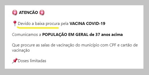 O informe via redes sociais frisa apenas que as doses são limitadas.