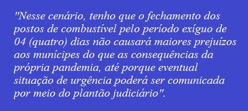 "Neste momento nenhuma atividade essencial suspensa por quatro dias é mais perigoso que o vírus da Covid-19. Somente ele coloca em perigo a sobrevivência e a saúde da população".