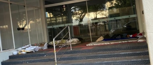 Moradores de rua no Shopping Piu Bello, de Campo Mourão, que está fechado há vários anos.