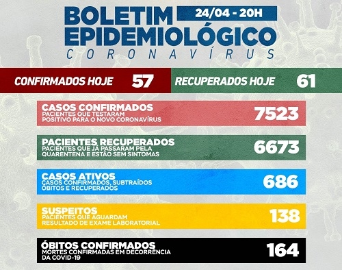 Mais 57 casos de covid-19 foram confirmados neste sábado em Campo Mourão. Os recuperados foram 61. E houve a confirmação de mais uma morte, a 19ª deste mês. Na ala covid, 52 pessoas estão internadas, sendo 25 na unidade de terapia intensiva. Taxa de ocupação: 89% na enfermaria, 79% na UTI SUS e 60% na UTI convênios.