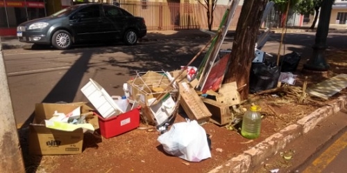 Canteiro central da av. Manoel Mendes de Camargo virou depósito de lixo nas proximidades do Centro Médico, centro de Campo Mourão.