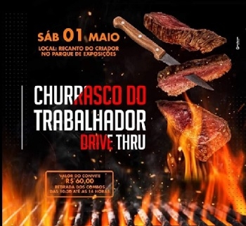 Neste sábado, 1 de maio, tem Churrasco do Trabalhador em Campo Mourão e restam pouco convites à venda. Será no sistema drive thru, com retirada no Recanto do Criador (Parque de Exposições), das 10h30 às 14h. Custa R$ 60 e inclui churrasco, arroz, salada, pão de alho, mandioca e linguiça.