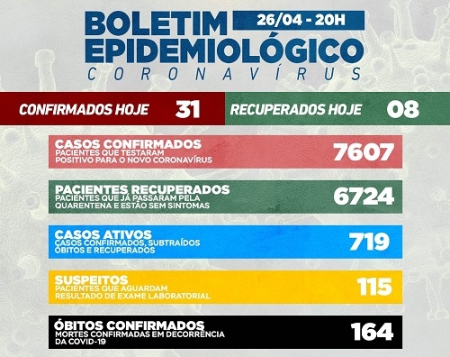 Regional - Mais 209 casos de covid-19 foram confirmados em 16 cidades da região. O total desde o início da pandemia foi a 22.313, com 478 mortes (houve o 19º óbito em Araruna, o 16º em Barbosa Ferraz e o 19º em Moreira Sales).