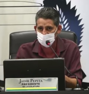 Jadir Pepita (Cidadania), presidente da Câmara de Campo Mourão, ao apresentar requerimento em que pede ao deputado federal Rubens Bueno que interceda junto ao governo federal para viabilizar máquinas pesadas para o município; na sessão desta segunda-feira.