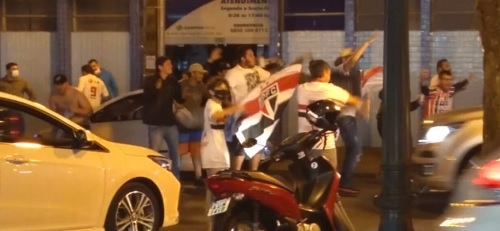 "Como comerciante, venho sofrendo com os efeitos da pandemia. Porém neste domingo à noite deparei com essa comemoração de uma partida de futebol. Cerca de 30 ou 40 pessoas aglomeradas, desrespeitando os protocolos contra a covid. Agora ficam duas perguntas: o comércio é o culpado pelas contaminações?Onde está a fiscalização?"