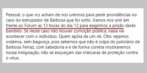 Um protesto em frente ao fórum está sendo organizado para esta segunda-feira à tarde.