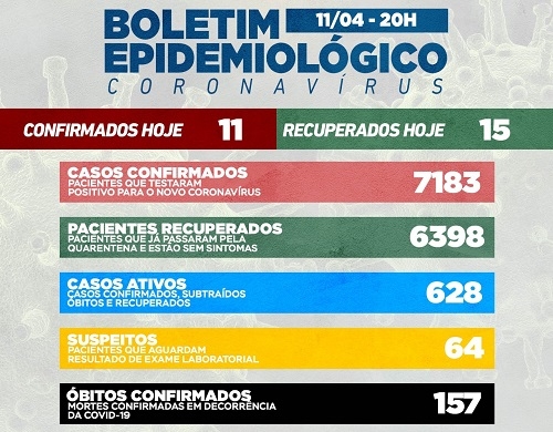 Regional - Mais 62 casos de covid-19 foram confirmados em oito municípios. O total desde o início da pandemia foi a 20.656, com 448 mortes.