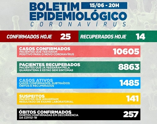 Vinte e cinco casos de covid-19 foram confirmados nesta terça-feira em Campo Mourão, Os recuperados foram 14. Também foram confirmadas mais duas mortes (39 este mês). O número de casos suspeitos, que vinha caindo, mais que dobrou, saltando de 63 para 141. Taxa de ocupação de leitos: 115% na enfermaria, 141% na UTI SUS e 120% na UTI convênios.