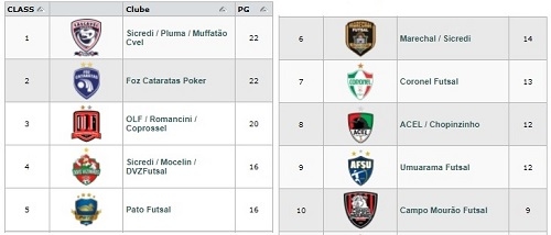 Campo Mourão lidera o grupo C da Liga Nacional de Futsal, mas é apenas 10° colocado no Paranaense.