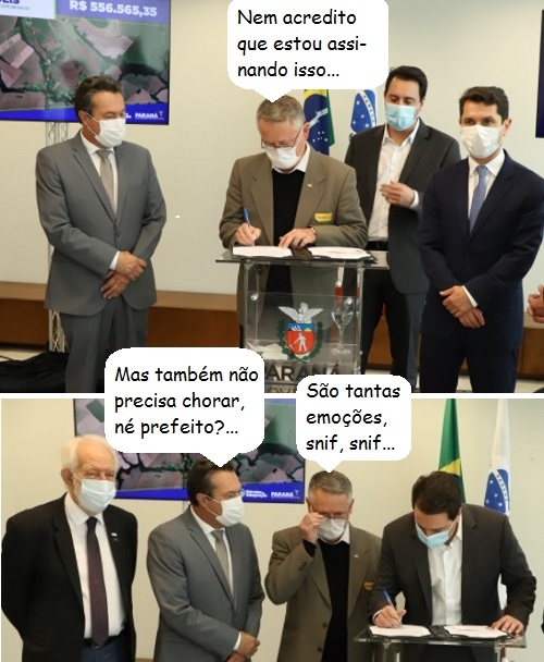 O governo do Estado assinou nesta terça-feira convênios para pedras irregulares em trechos de estradas de mais 10 municípios. Um deles é Janiópolis, que terá R$ 557 mil para 2 km da estrada rural da comunidade São Domingos. O prefeito Ismael Dezanoski esteve por lá. O secretário de Estado Márcio Nunes também.
