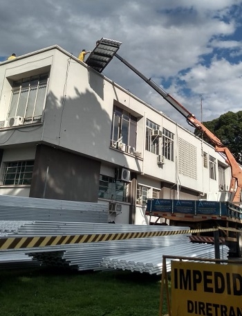 Foi iniciado o trabalho de troca do telhado da prefeitura de Campo Mourão. A reforma foi licitada por R$ 197,3 mil. O Paço Municipal 10 de Outubro tem 57 anos e faz tempo que sofre com goteiras. Na semana passada a Assessoria de Comunicação ficou alagada após um temportal.