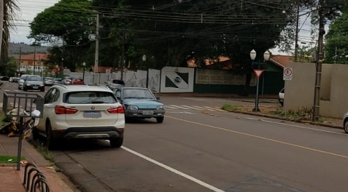 Ou a Diretran implantou a "mão inglesa" em ruas de Campo Mourão, ou tem motorista que estacionou na contramão na rua Brasil.