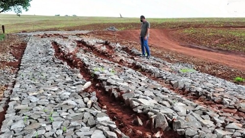 Pedro Antônio Marafon, secretário de Viação e Serviços Rurais de Ubiratã, sobre estragos feitos no fim de semana nas obras de pavimentação com pedras irregulares na estada Iracema; em vídeo postado em redes sociais.