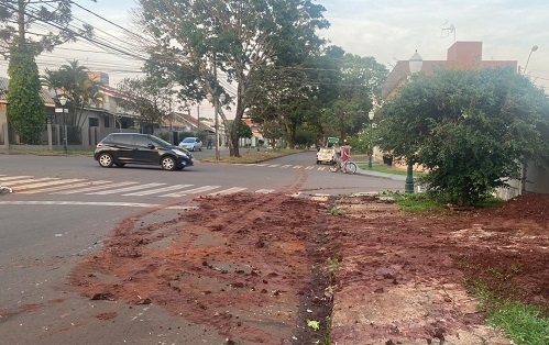 "Alerta do internauta! Motociclistas correm o risco de derraparem nesse barro na av. Afonso Botelho. E só a chuva não vai lavar isso tão cedo. Se um motociclista cair ali, quem paga a conta?
