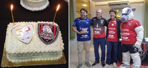 Teve bolo nesta sexta-feira para marcar os 50 anos do time de futsal de Campo Mourão, que começou como Associação Tagliari. Aliás, Itamar Tagliari participou da comemoração. O presidente Eduardo José Ribeiro repassou a moto que foi sorteada através de rifa. Aí, a boa notícia. O sorteado, Tadeu Nunes, devolveu a "motoca" para a ACMF.