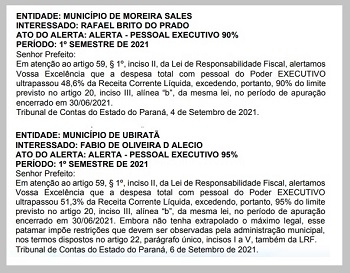 Ambas por gastos com pessoal no primeiro semestre deste ano.