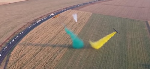 Quem disse que só teve carro, trator e caminhão na mobilização pró-presidente Jair Bolsonaro em Campo Mourão, neste 7 de setembro? Teve avião também. No encerramento do evento, no anel viário, aeronaves fizeram voos razantes e até soltaram fumaça verde e amarela. A imagem é reprodução de vídeo feito por Fábio Nogaroli.