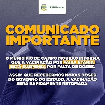 Completa uma semana nesta segunda-feira que não há vacina para a primeira dose em Campo Mourão.