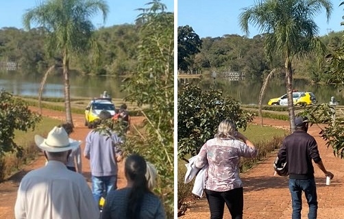 Domingo, no Parque do Lago. Pista de caminhada com viatura de polícia?...