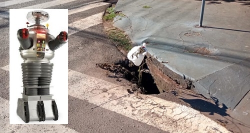 O "povo" já sinalizou com sacolinha plástica, mas os sensores do Robô foram acionados: cuidado ao passar pela esquina da av. Goioerê com a rua São Josafat. Tem bueiro sem tampa no local...