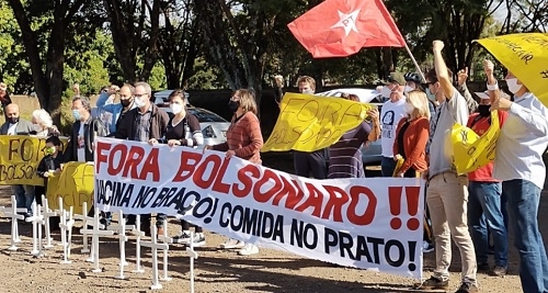 Um grupo de pessoas, a maioria ligadas a partidos de esquerda e a sindicatos de trabalhadores, participou neste sábado de protesto em Campo Mourão contra o governo Bolsonaro. Eles fizeram uma carreata por ruas do "grande Lar Paraná" e se concentram com faixas e cartazes. Entre os pedidos, impeachment. "vacina no braço" e "comida no prato". Manifestações foram marcadas em várias cidades do País.