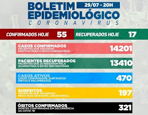 Campo Mourão confirmou mais 55 casos de covid-19 nesta quinta-feira. Os recuperados foram 17 e o número de vírus ativo subiu para 470. Os casos suspeitos também subiram de 147 para 197. Houve mais uma morte, a 33ª de julho. Taxa de ocupação de leitos: 84% na enfermaria, 79% na UTI SUS e 40% na UTI convênios.