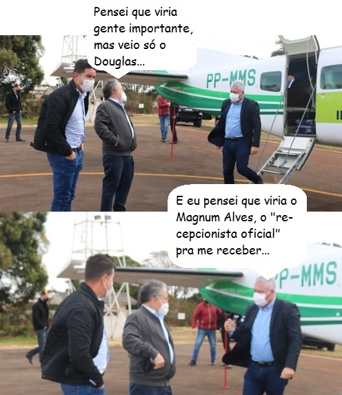 Os cliques são desta quinta-feira, no aeroporto de Campo Mourão. O prefeito Tauillo Tezelli foi receber o chefe da Casa Civil, Guto Silva. O deputado Douglas Fabrício veio no mesmo avião. Silva e Douglas também cumprem agendas em Araruna, Peabiru e Barbosa Ferraz.