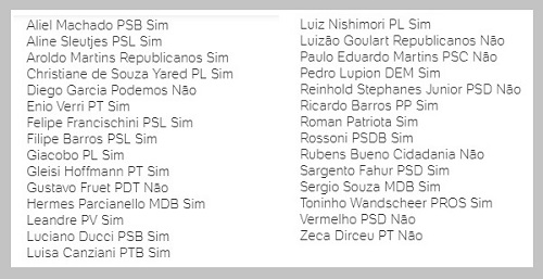 O quadro acima mostra como votou a bancada do Paraná (reprodução UOL).