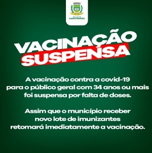 A prefeitura de Campo Mourão suspendeu nesta quarta-feira a vacinação para moradores de 34 anos.