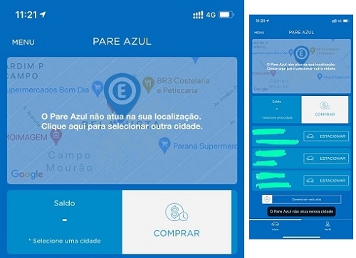"Multam, mas o aplicativo implantado para a Zona Azul de Campo Mourão não funciona. São 10 minutos tentando ativar e até agora nada".