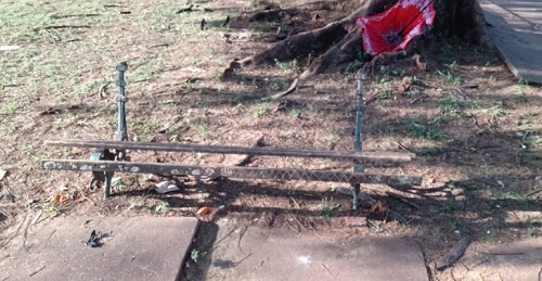 Olha o estado do banco da pracinha do Ilha Bela, em Campo Mourão.