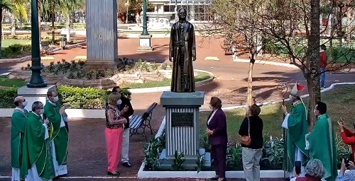 Foi inuaugurada neste domingo, na praça São José, a estátua de d. Mauro Aparecido dos Santos, o terceiro bispo de Campo Mourão. Ele morreu em março, aos 66 anos, vítima da covid-19. Nesta segunda-feira completa 23 anos que ele foi chegou a Campo Mourão como bispo coadjutor. Assumiu a diocese poucos meses depois, com a morte de d. Virgílio de Pauli. Ficou até 2007, quando foi nomeado arcebispo de Cascavel.
