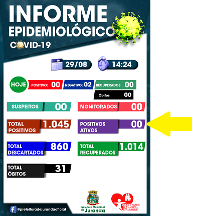 Juranda é o terceiro município da região que está, oficialmente, sem casos ativos de covid-19. "Zerou" neste fim de semana. Dos 1.045 casos confirmados por lá desde o início da pandemia, 1.014 se curaram e 31 morreram. Os outros dois municípios "zerados" no momento são Janiópolis e Moreira Sales.