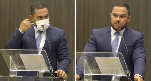 Márcio Berbet, vereador em Campo Mourão, ao iniciar a fala no espaço da "palavra livre" durante a sessão da Câmara de Campo Mourão. Segundo ele, os deputados estaduais não usam máscara na hora do uso da palavra livre, daí o "direito de igualdade".