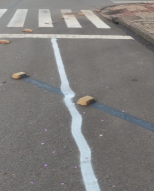 Alguma coisa deu errado na pintura da faixa na rua Santa Catarina, perto da Receita Federal.