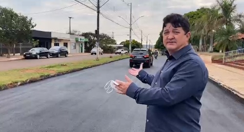A prefeitura refez o asfalto no trecho e o prefeito Oclécio Meneses foi lá para fazer a "reabertura oficial".